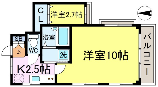 K 2.5帖/洋室 10.0帖/S 2.5帖 - 向き